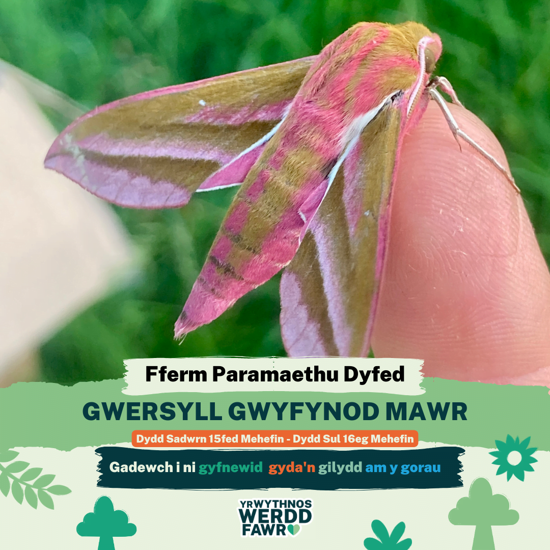 Mae’r gwyfynod yn anhygoel ac yn hardd. Os nad ydych erioed wedi profi rhyfeddod cudd yr hyn sy’n hedfan yn y nos, rydych chi mewn am wledd!