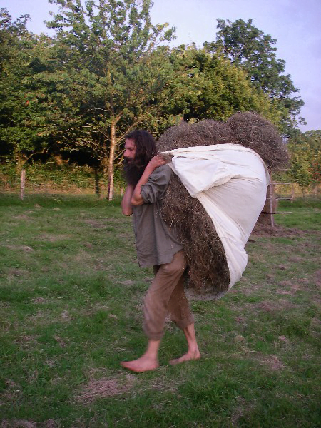 I’ll also be sharing some heritage images. First off, here’s Phil (2011) carrying hay before we discovered the “dumpy sack” method (and whilst his beard was still black!).