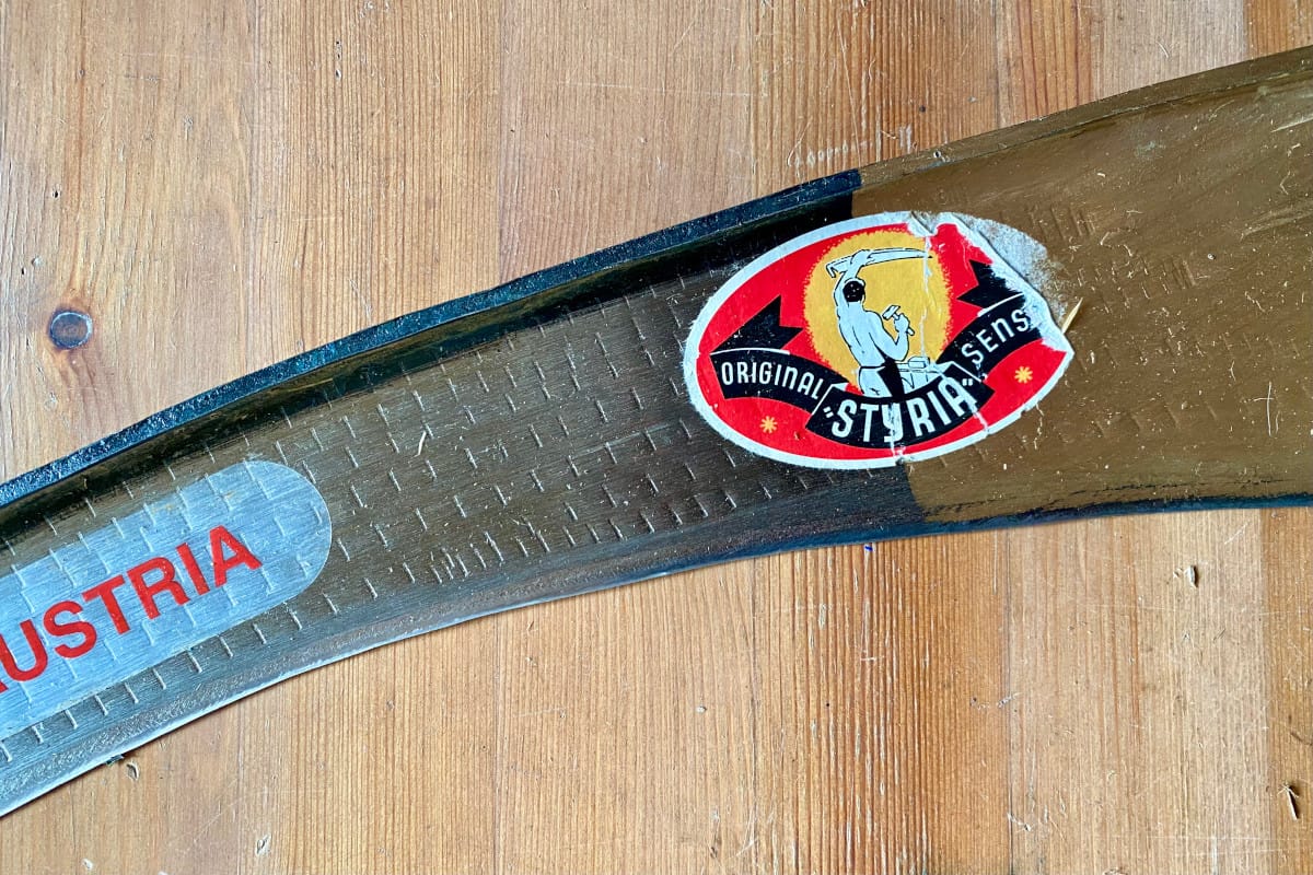 These blades were used on a scythe course in 2025. They have been edge peened by Phil but show some signs of light use (worn label, some wear to lacquer) and may have some very minor rust marking under the lacquer. The marking will have no long term impact on their function