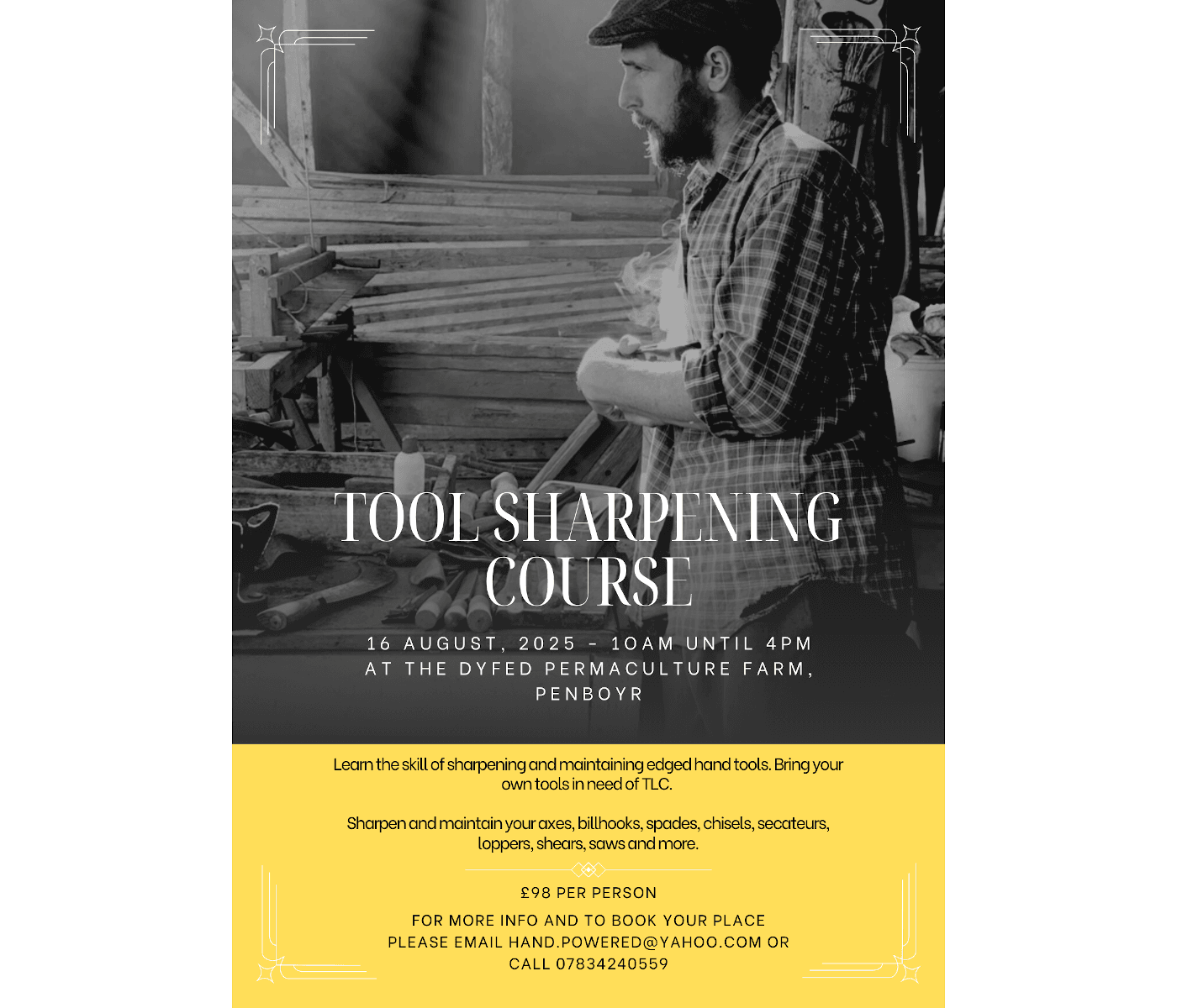 Bring along your edged hand tools that are in need of TLC. Danny and Helene (of Hand Powered Traditional Land Based Skills) will help you get them sharp and teach you the skills needed to keep them that way.