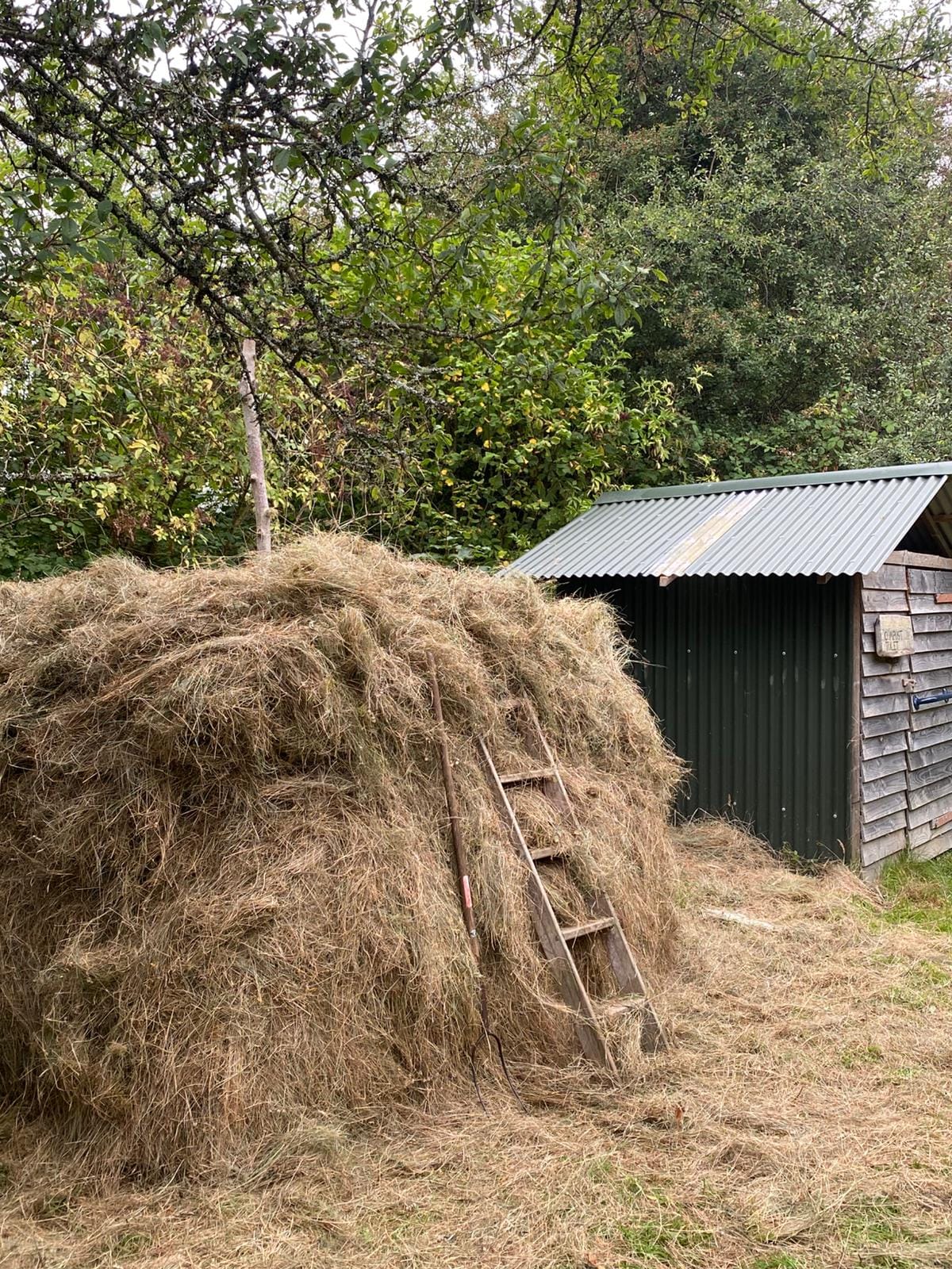 We pretty much filled the barns with the crop from our early top meadow so most of the crop from Cae Mari Jones has gone onto an outdoor haystack.
